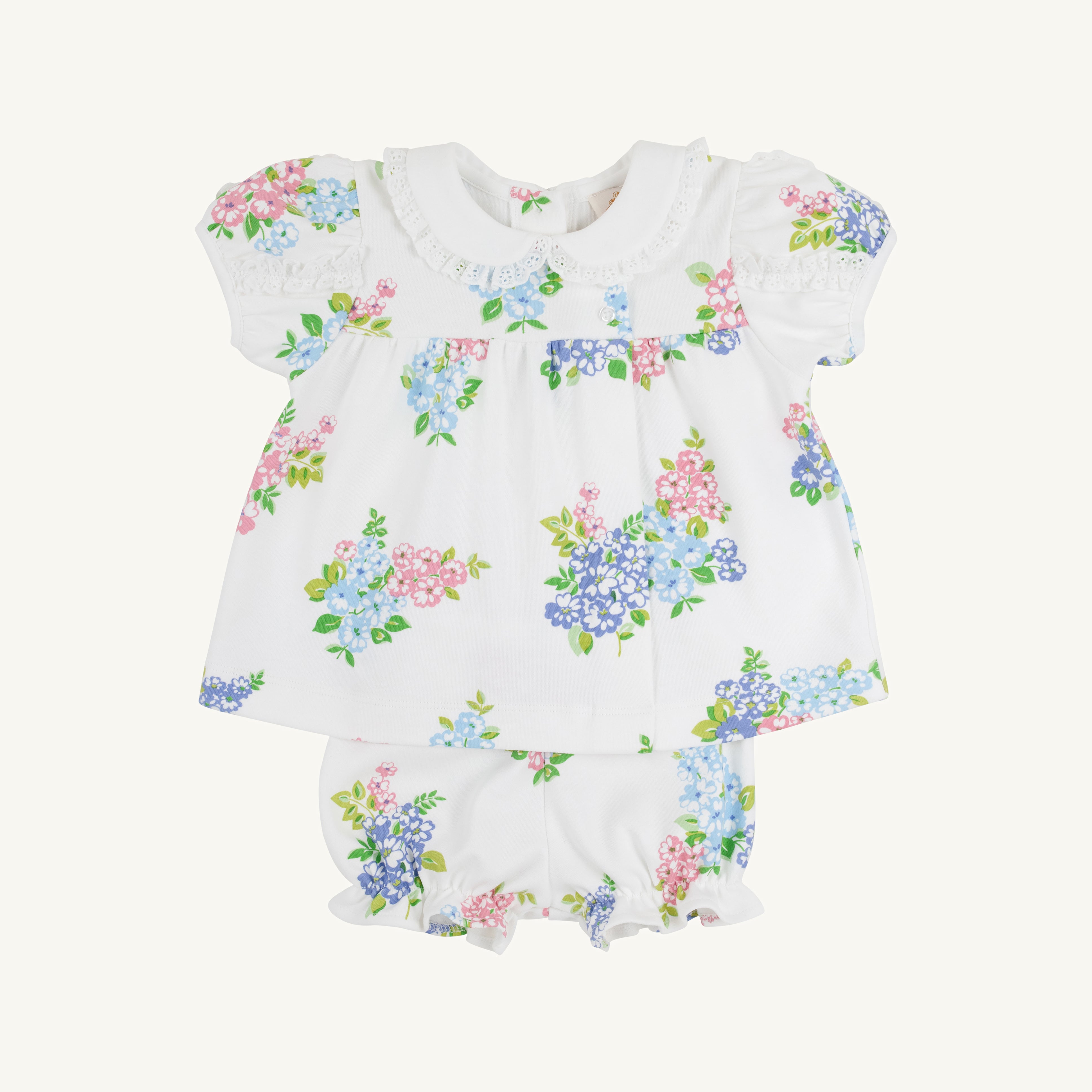 Make picking out an outfit a breeze with our Mary Baker Bloomer Set in Just Because Bouquets! This coordinated two-piece set takes the guesswork out of getting dressed while the comfortable bloomer style gives her freedom to crawl, play, and explore without any restrictions. The two-piece outfit that you know will look cute every time and makes both you and your little one happy!