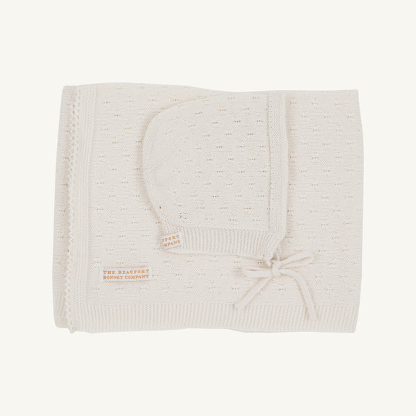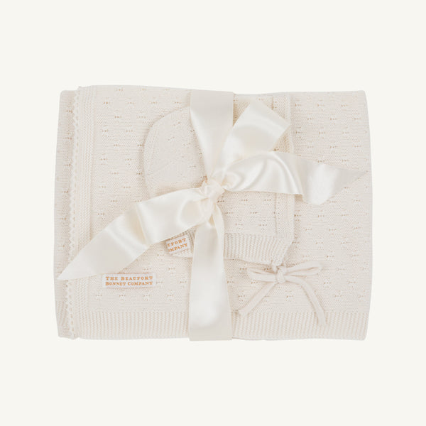 We are so excited to introduce our newest gift set, the Ramsey Receiving Set. This set features a bonnet and blanket that's perfect for swaddling your newest bundle of joy. Tied together with a bow, the Ramsey Receiving Set makes for the perfect baby shower gift.