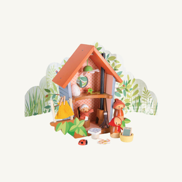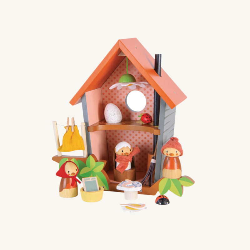 Meet Robin and his growing family! Mother Ruby and baby Rosy who has just hatched out are eagerly watching the egg upstairs! Ruby is busy washing the sheets and hanging them on the line, while preparing a meal of 2 juicy worms. A fold out printed backdrop completes the scene and encourages more storytelling! Good for imaginative play. Good for storytelling.