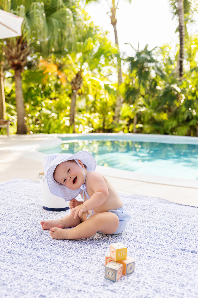 The Sawyer Sun Hat is perfectly preppy and perfectly practical! He will enjoy having the sun out of his eyes and you'll enjoy the shade it provides his sweet face and shoulders.