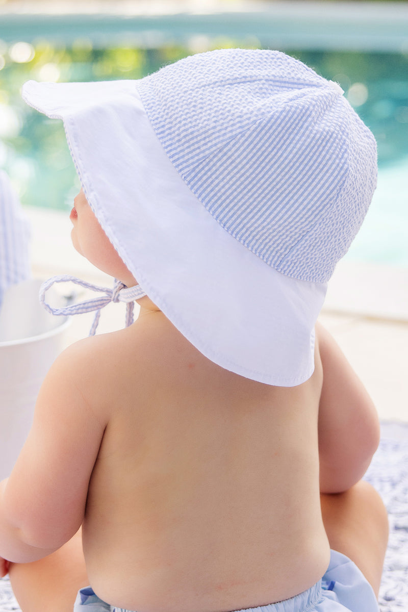 Sawyer Sun Hat | Breakers Blue Seersucker with Worth Avenue White...