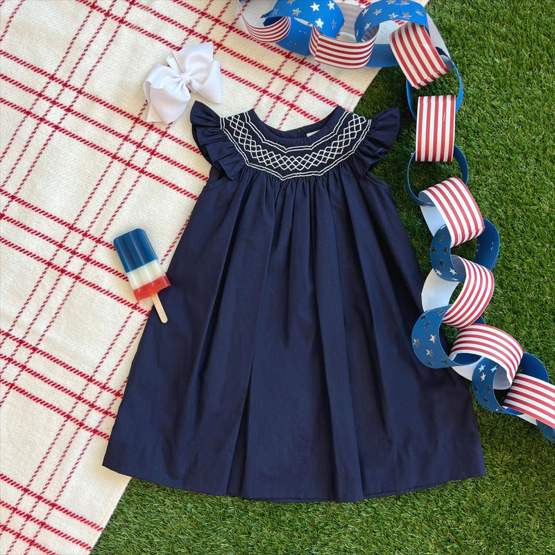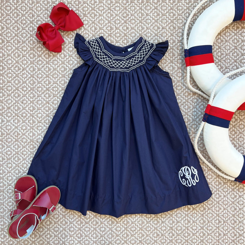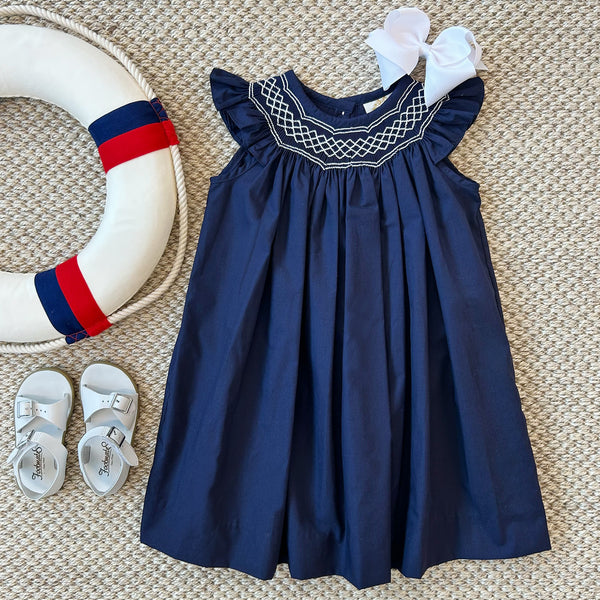 Angel Sleeve Sandy Smocked Dress | Nantucket Navy with Worth Avenue White Smocking...
