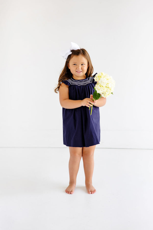 Our Angel Sleeve Sandy Smocked Dress is a must-have, so why not have it in every color?! Now featuring Nantucket Navy with Worth Avenue White Smocking, this is sure to be a timeless staple!