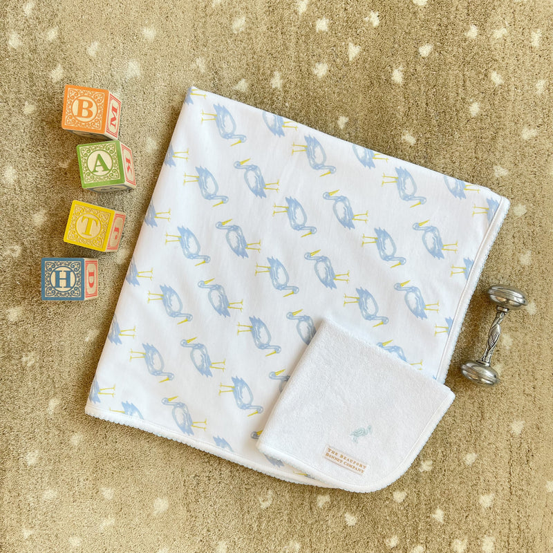 Bath time just got a whole lot sweeter with our Rub-A-Dub Gift Set! This darling set includes our hooded towel and wash cloth featuring our Sir Proper Stork print.