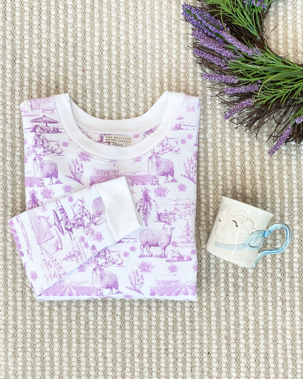 Designed exclusively with Brittingham Farms, our Lavender and Lambs toile is inspired by their beautiful lavender farm in southern Delaware.