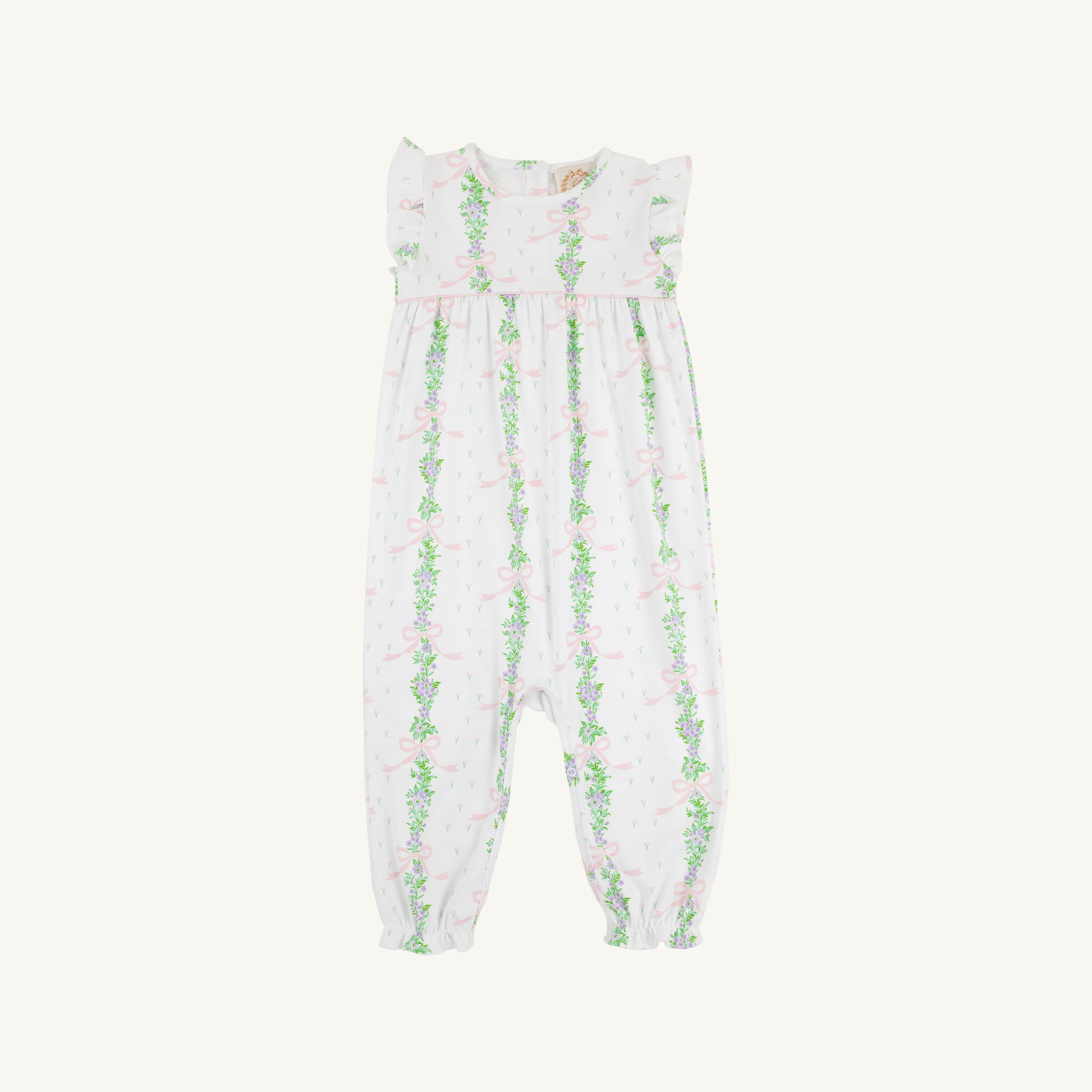 Elevate her warm-weather wardrobe with this Sleeveless Leigh Ann Angel Sleeve Romper in Fincastle Floral with Palm Beach Pink! Designed with premium 100% Pima Cotton Knit fabric, this romper keeps her comfortable while she looks sophisticated and elegant. A piece that can be dressed up for Easter celebrations or simply worn to a playdate!