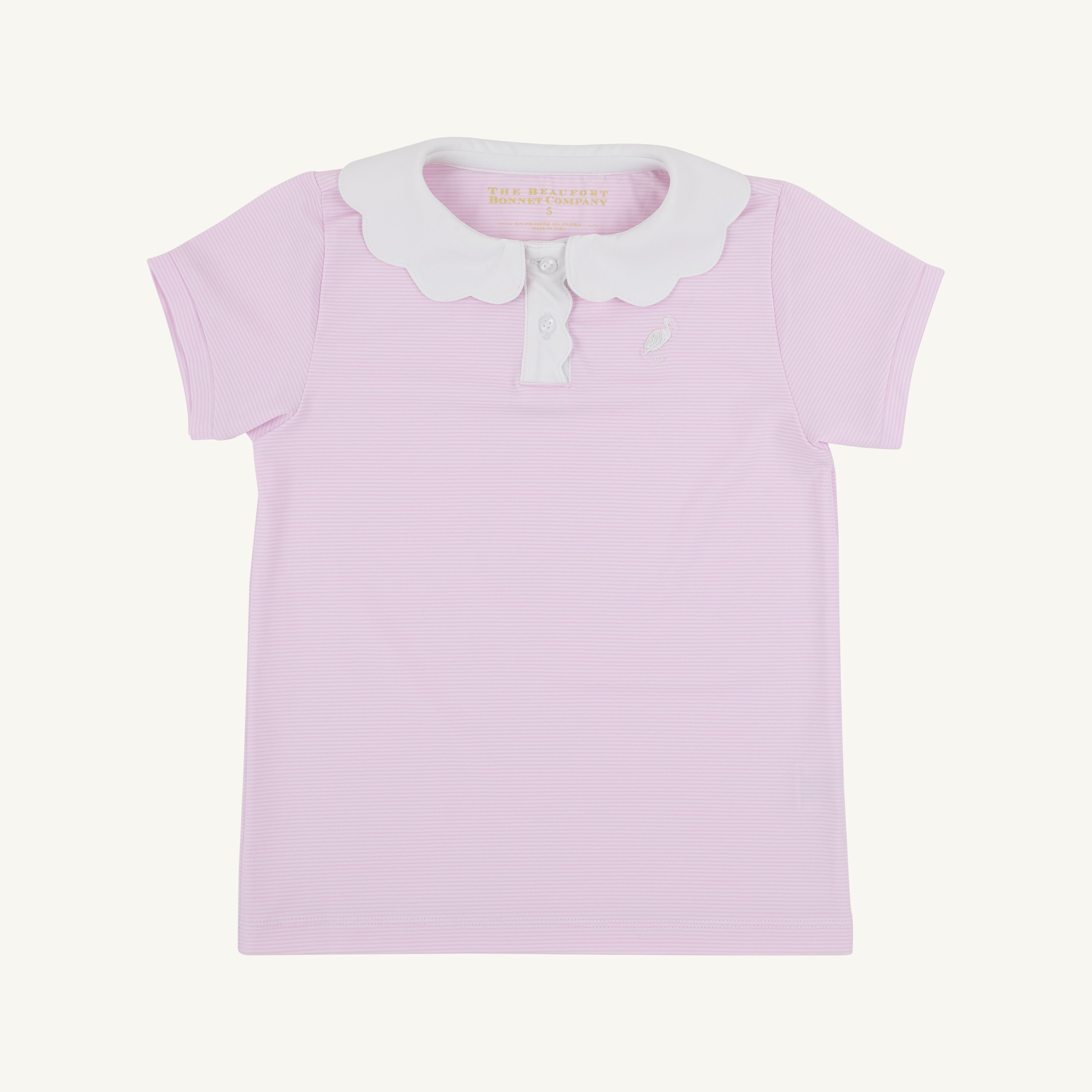 Elevate her everyday style with our Prepletic™ Preppy Polo featuring sophisticated Valley High Violet Stripe beautifully accented with Worth Avenue White trim. Crafted from premium performance fabric with classic polo styling and a comfortable fit, this versatile piece transitions effortlessly from the golf course to casual outings and weekend adventures. A wardrobe essential that brings timeless elegance and athletic functionality to every occasion.