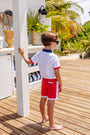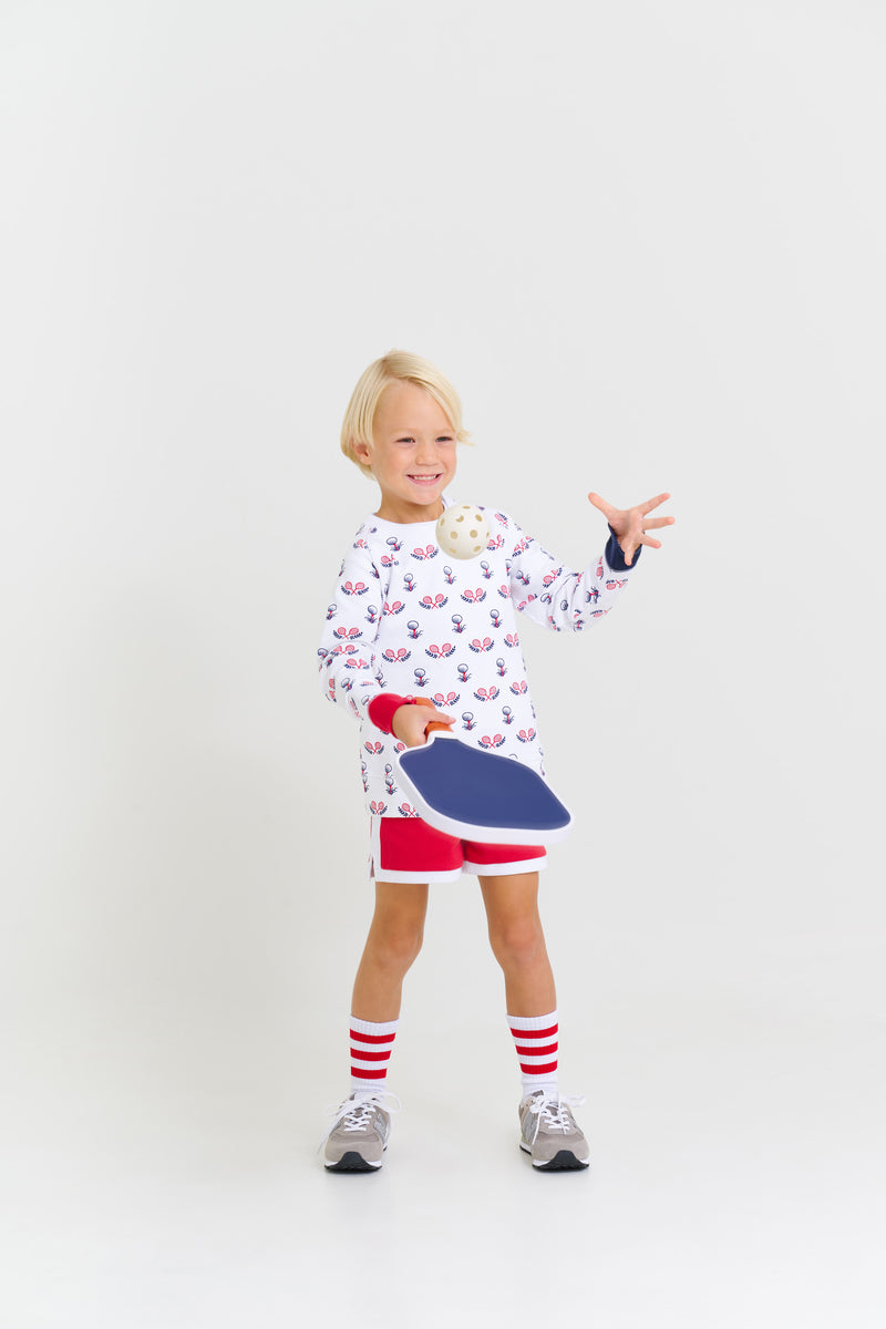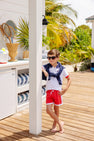 Your little gent will love our Shaefer Shorts in Richmond Red with Worth Avenue White and Nantucket Navy Stork. These knit shorts are comfortable, easy to wear, and feature the softest pima cotton. He'll be asking to wear these time + time again! Pair with polos, Haywords, and so much more... in these shorts, he'll be darling every time he walks out the door!