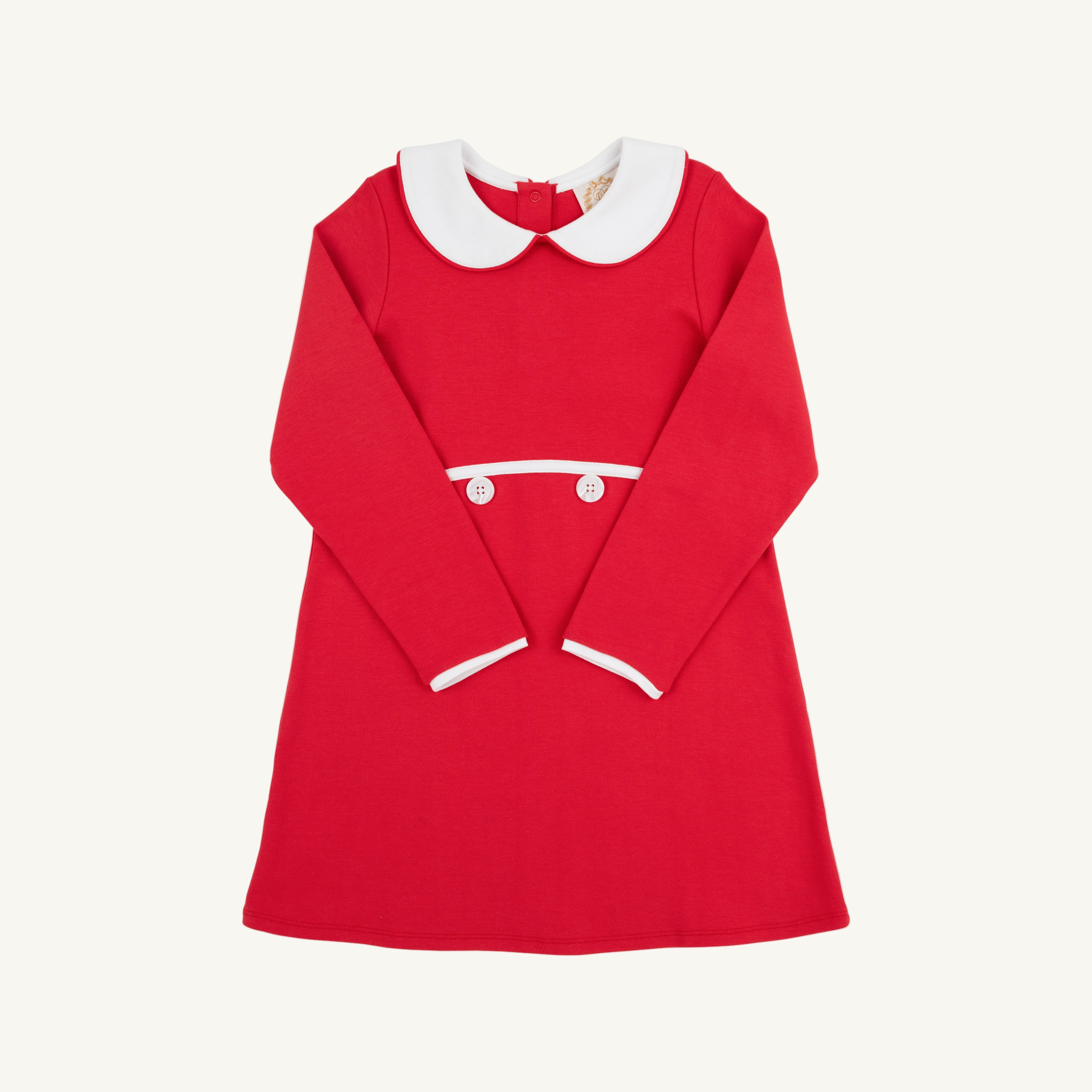 Lindy's Lunch Dress in Richmond Red with Worth Avenue White is sure to be a staple in your little girl's wardrobe this holiday season! Featuring two decorative buttons in the front and functional snaps down the back, you will love all of the precious details of this dress!