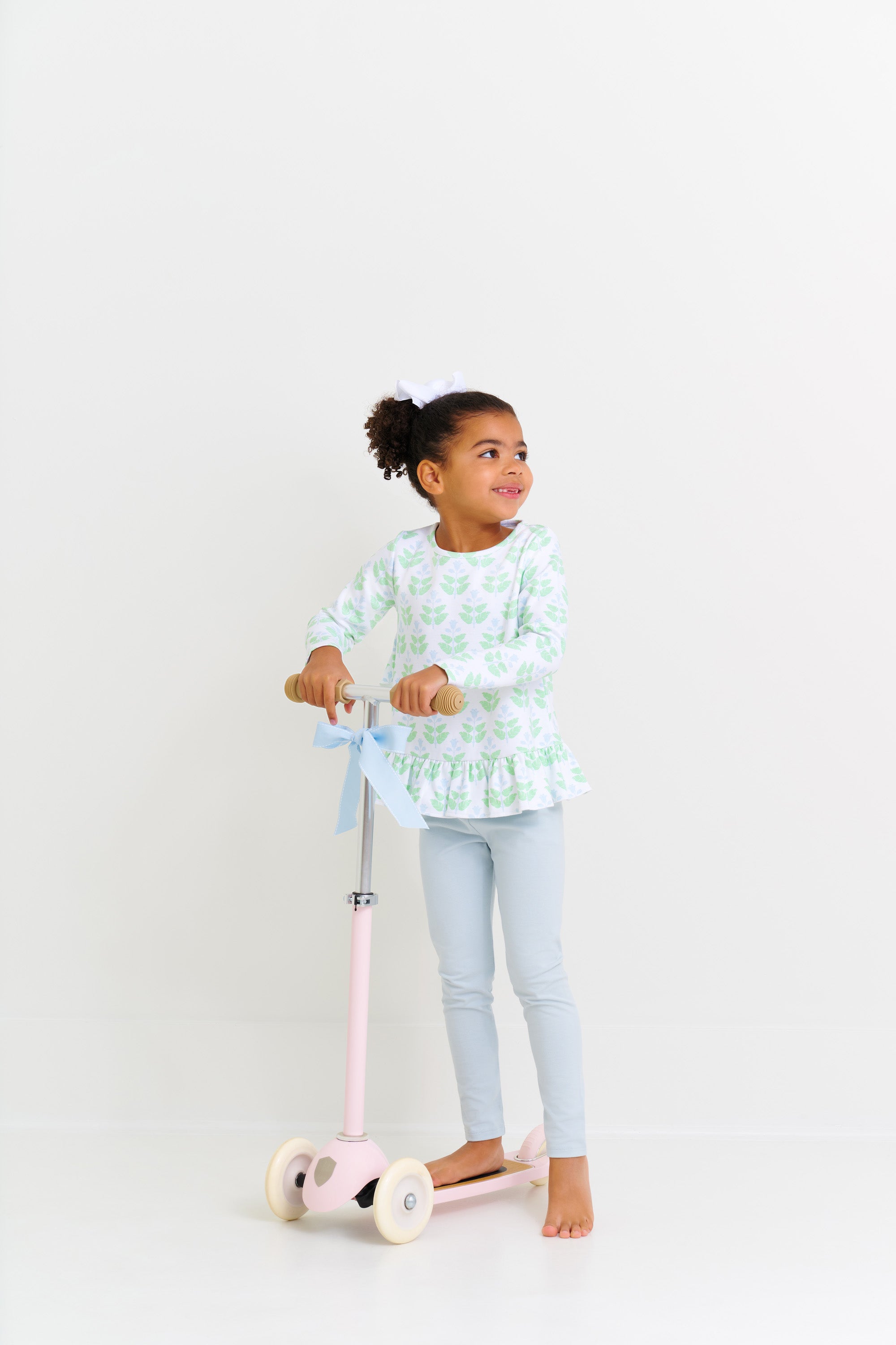 Your sweet girl will be ready for a day of play in our Long Sleeve Love You Back Top! Featuring Hanover Hand Block and the sweetest ruffle details, this top is sure to become her new favorite!