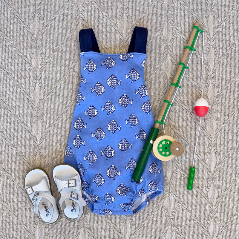 Stillman Sunsuit | Little Fishes with Nantucket Navy...