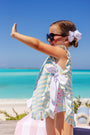 Our Carolina Coverup is sweet summertime perfection! This terrycloth cover up features Siesta Key Stripe (Pink) with Worth Avenue White ties and is the perfect way to dry off after a day splashing at the beach or playing in the pool.