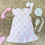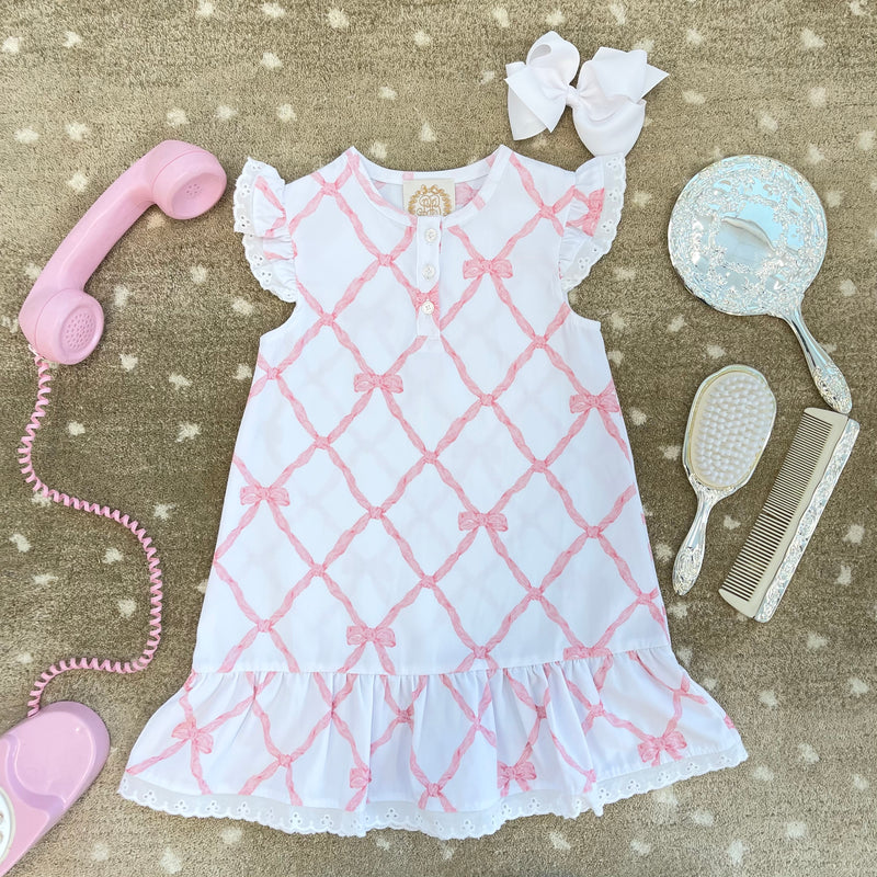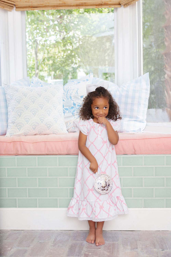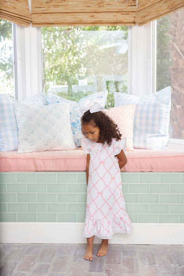The sweetest nightgown for the sweetest girl. Our Marnie Morning Gown in Belle Meade Bow with White Eyelet is a little girls dream come true!