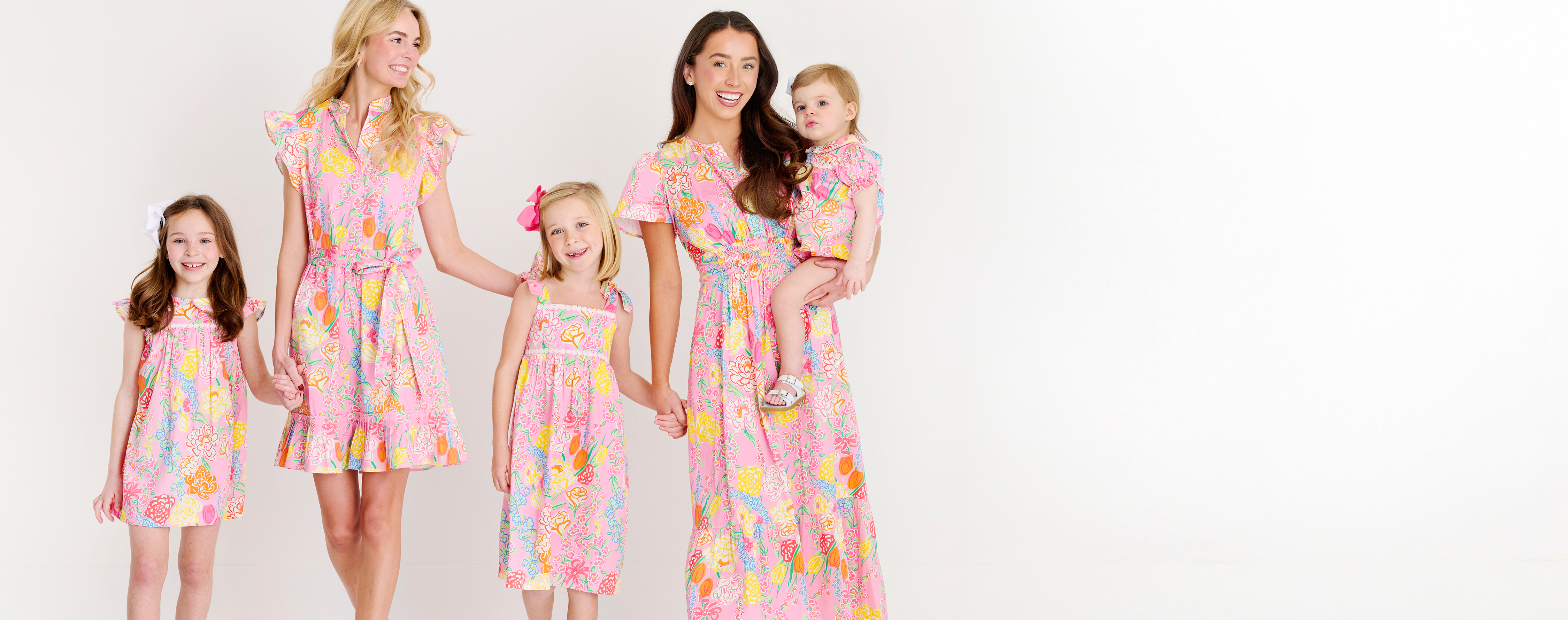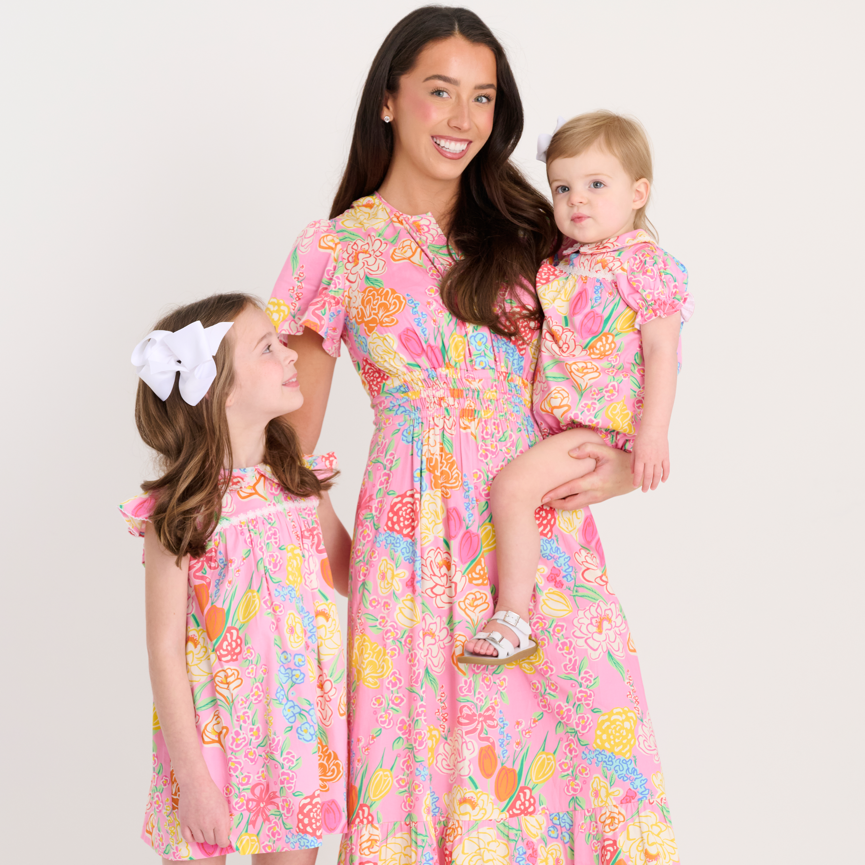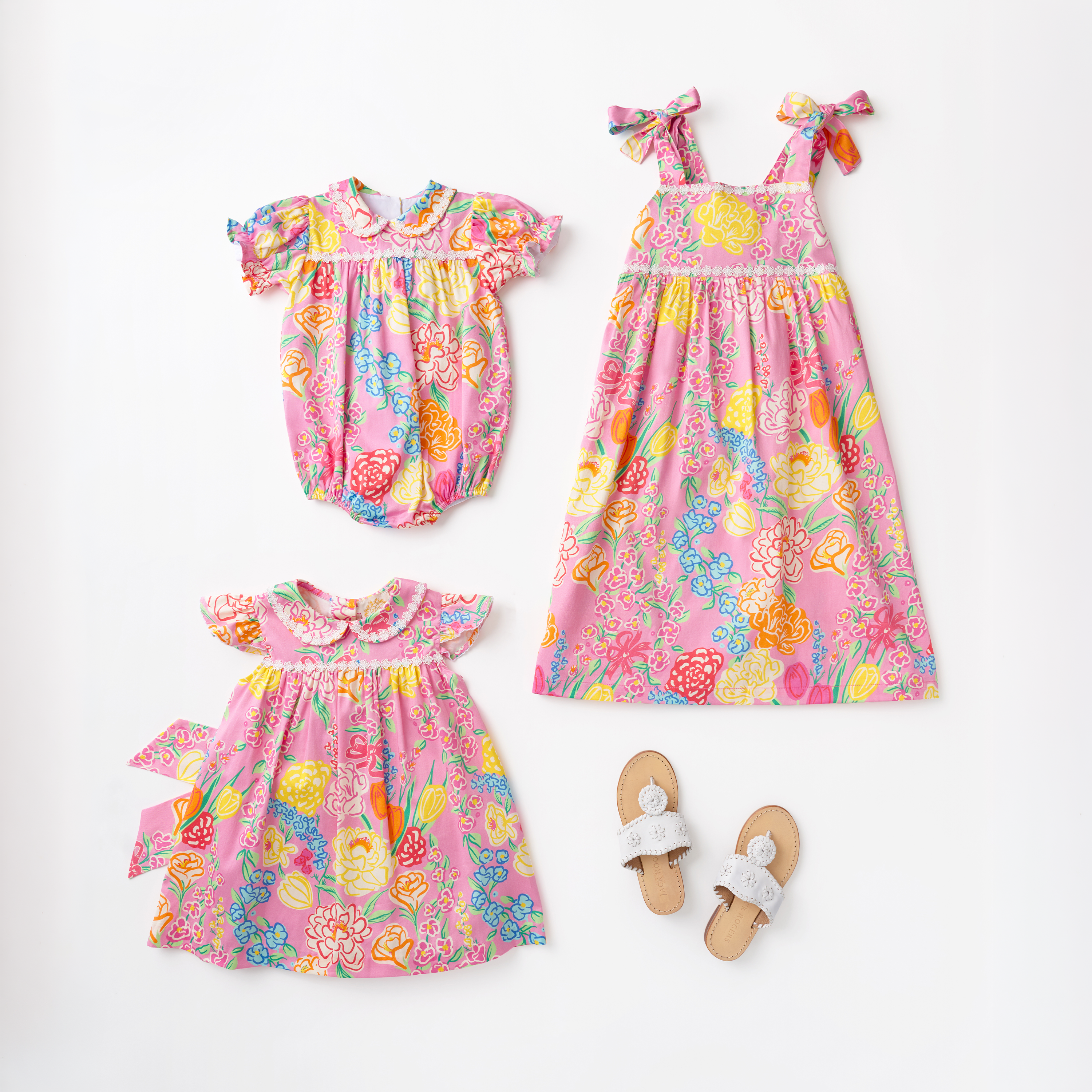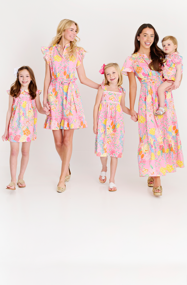Our new T.B.B.C. x Sheridan French collaboration was designed for mommy-and-me matching moments. This collection is inspired by timeless southern elegance and features a vibrant, playful print.