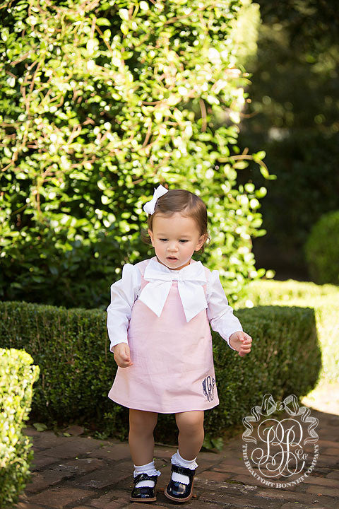 Elevate your little one's wardrobe with the Beatrice Bow Blouse in crisp Worth Avenue White—a timeless broadcloth top featuring our signature bow detail that layers beautifully under jumpers and overalls. This versatile piece transitions effortlessly from playdates to special occasions, delivering classic style with every wear. A wardrobe essential that brings effortless elegance to any outfit!