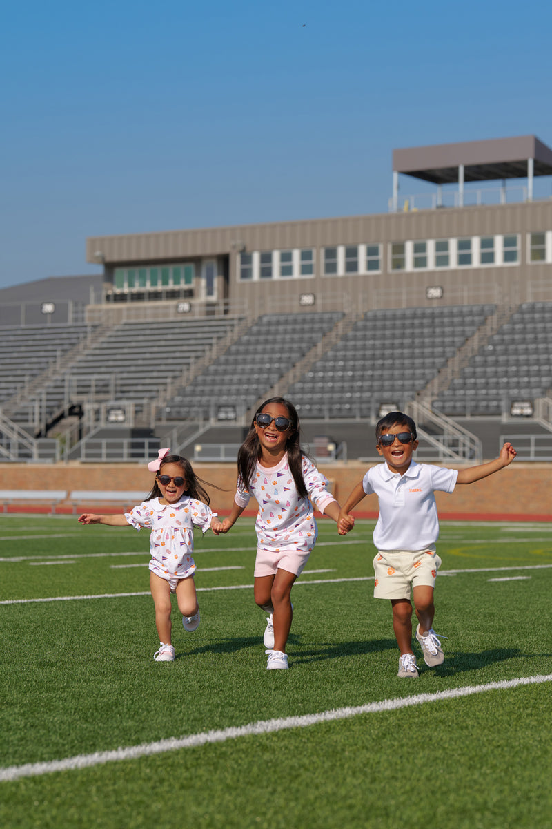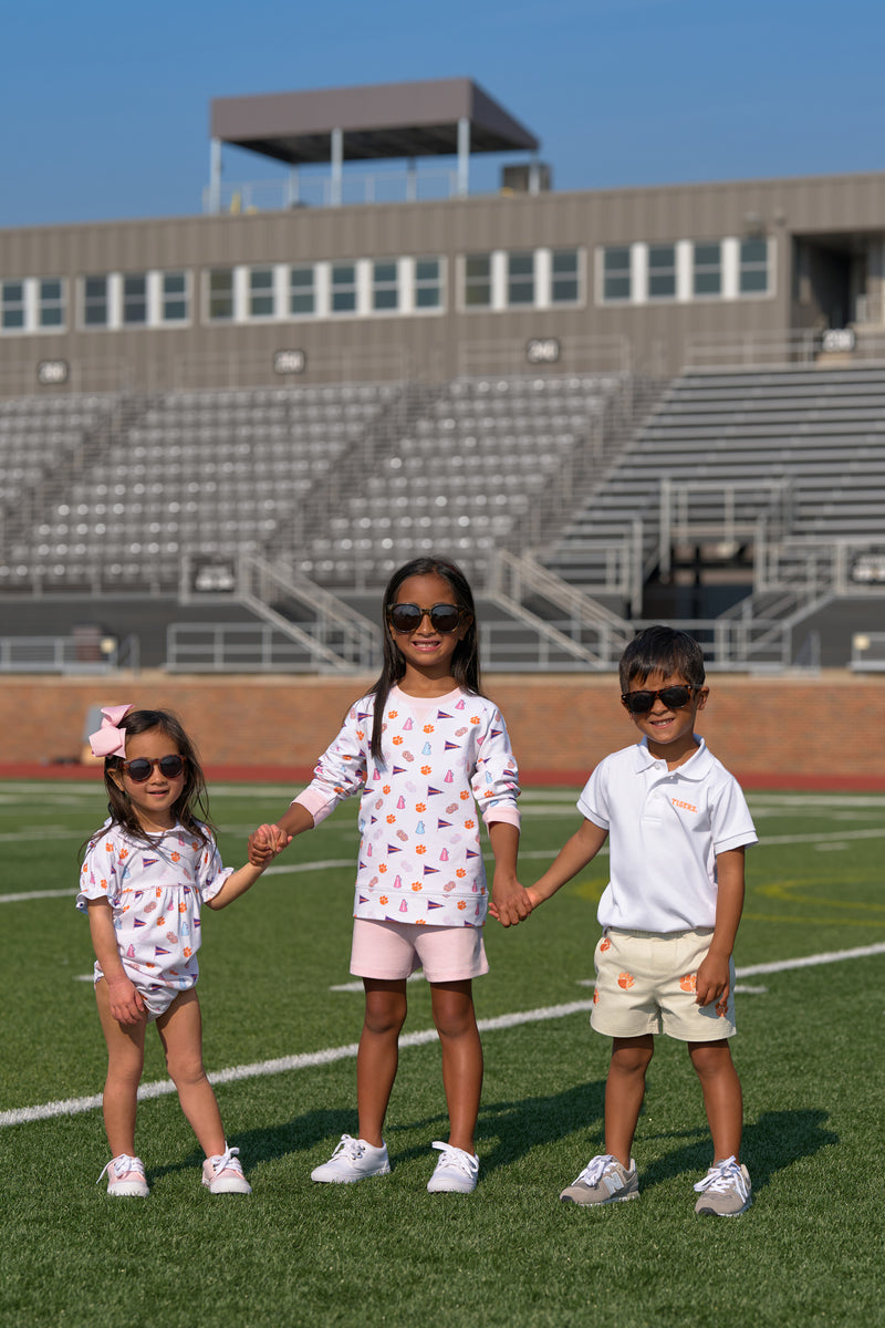 The Clemson Britt Bubble is as sweet as can be! Featuring our exclusive Tiger Triumph with Palm Beach Pink ric rac detail, this is the perfect bubble for all of her game day festivities.