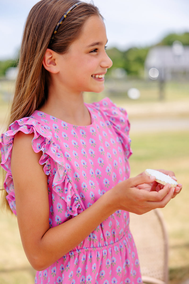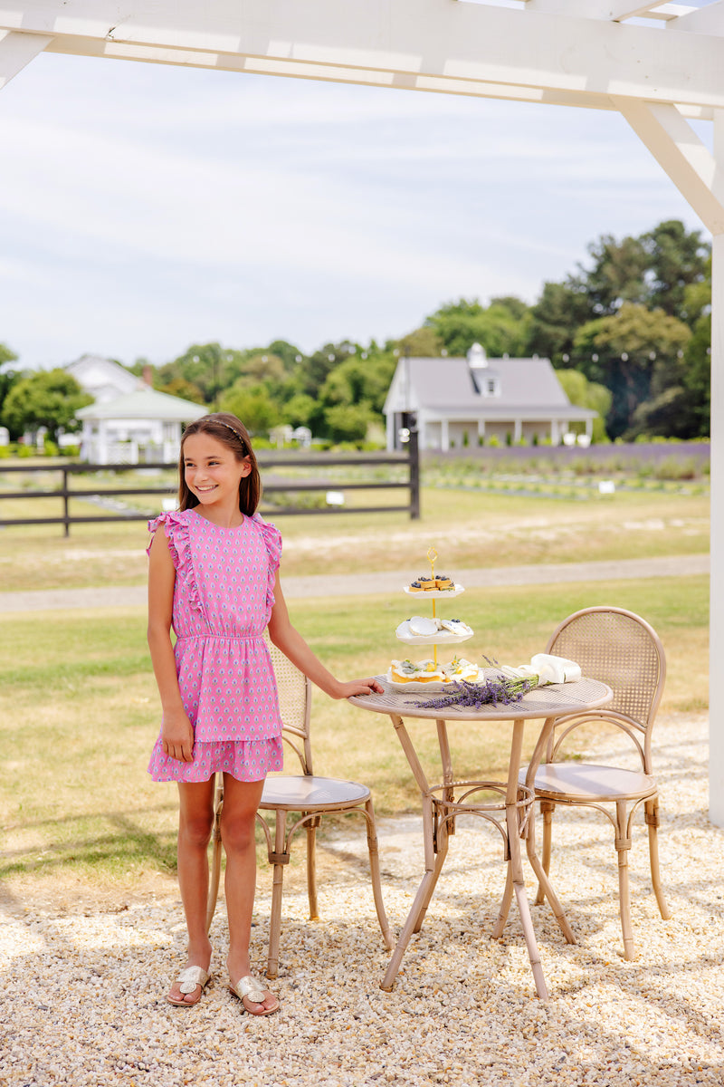 Emily Rives Ruffle Dress | Holly Hills Hand Block with Hamptons Hot Pink...