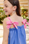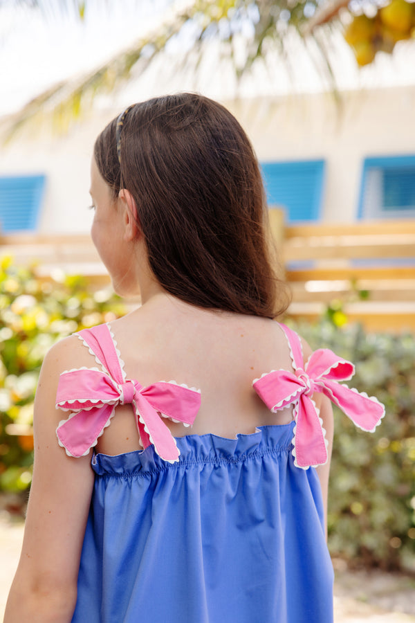 Our Lainey's Little Dress in Barbados Blue is guaranteed to be a wardrobe staple! Featuring Hamptons Hot Pink tie straps with Worth Avenue White picot detailing, your little lady will love the ease of this dress. It's perfect for throwing on to play in the sun!