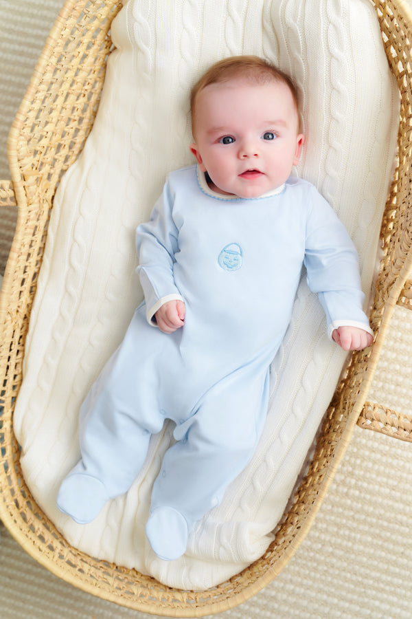 Our Rock Me Romper in Buckhead Blue will have you swooning over your baby boy! Featuring Palmetto Pearl & Pumpkin Embroidery this sweet romper is perfect to get into the Halloween spirit!