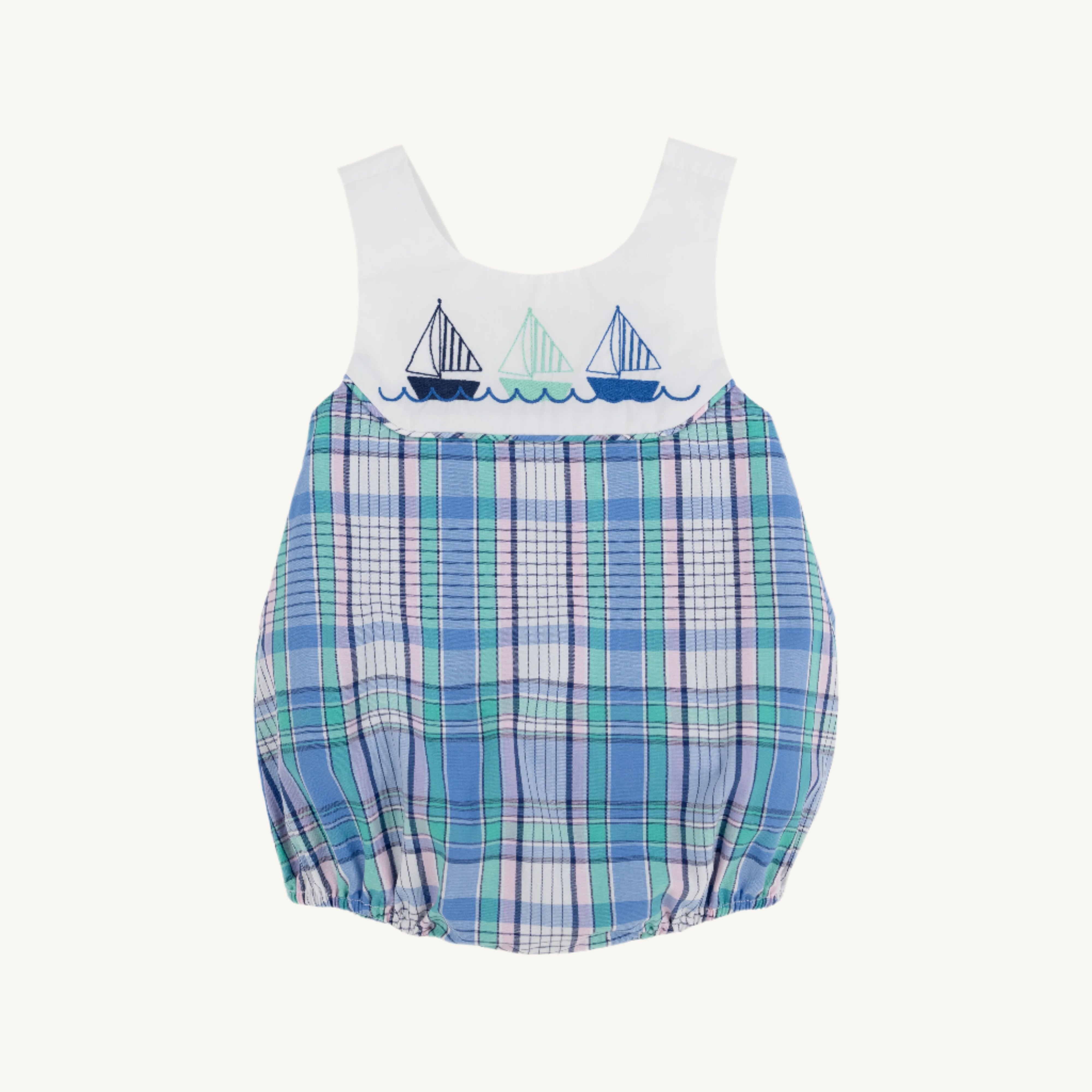 Sandler Sunsuit | Lauderdale Pier Plaid with Worth Avenue White & Sailboat Appliques...