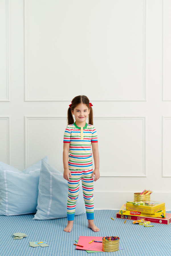 We are obsessed with our newest stripe! Featuring Portland Sealife Stripe, your little one will be cute and cozy for bedtime in their Sutton's Short Sleeve Set.