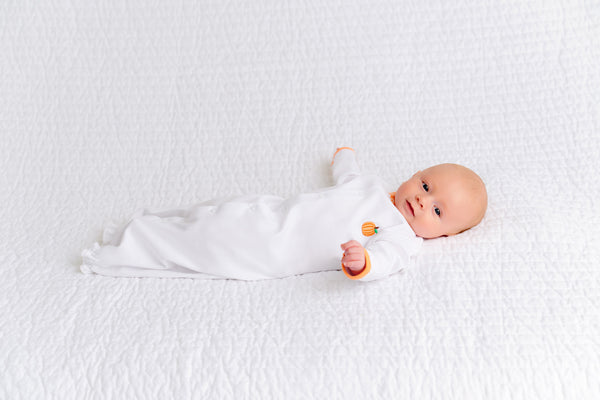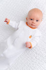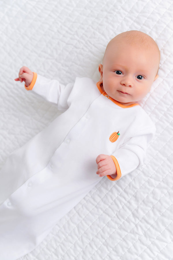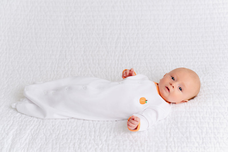 Drift off to dreamland in sweet seasonal style with our Twinkle Twinkle 2 in 1! Featuring Worth Avenue White with Seashore Sherbet Pumpkin Embroidery. This cozy pajama onesie is perfect for adding a dash of festive fun to your little one’s bedtime routine!